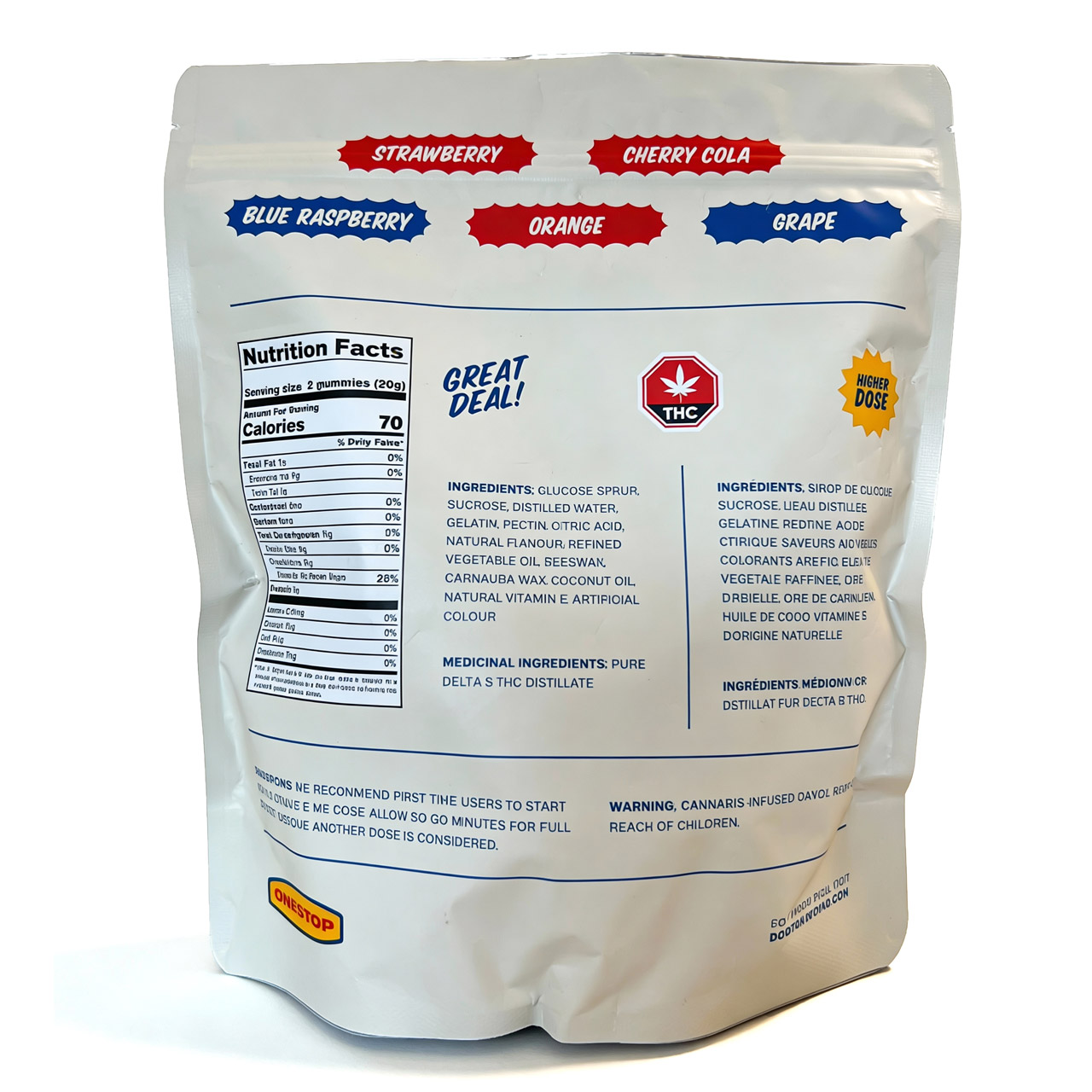 Skip the health and wellness premium attached to edible brands that flaunt their holistic healing properties and label their price tags accordingly, and get straight to having a blast with Onestop. Onestop Sour Value Pack THC gummies give you the best flavour and quality bang for your buck you could’ve asked for: with 4000mg THC divided into 50 80mg pieces sour strawberry THC gummies, sour cherry cola, sour blue raspberry gummies, sour orange gummies, and sour grape gummies, there’s nothing holding you back from having a Bodega quality edible experience at a convenient Onestop price. All Onestop THC edibles are made using pure lab-tested delta-9 THC.